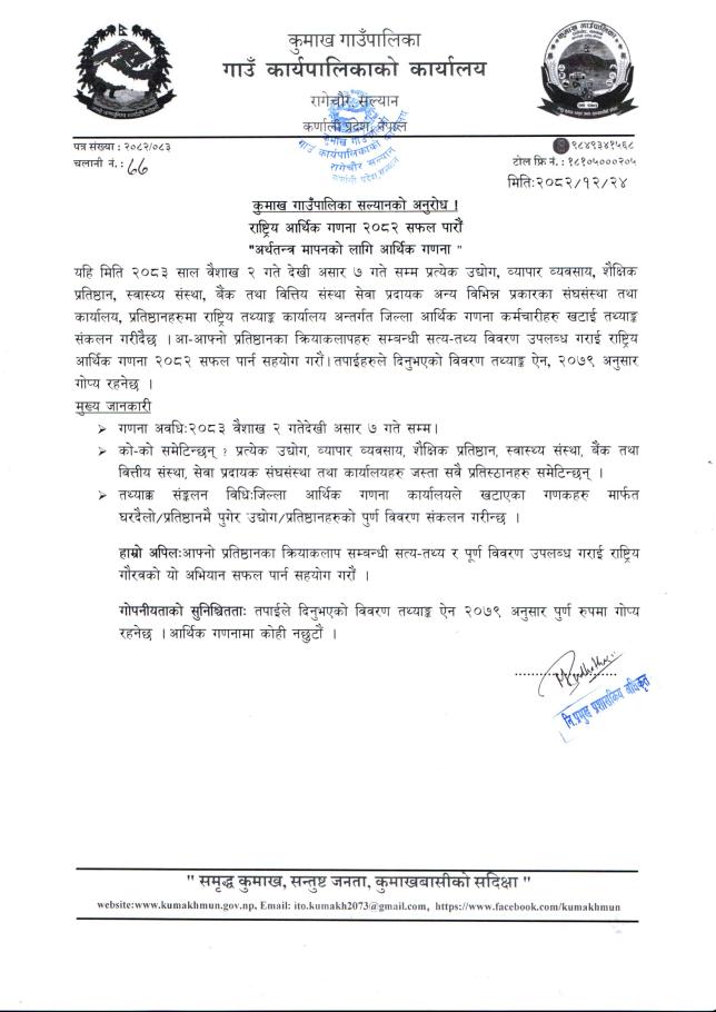 कुमाख गाउँपालिका सल्यानको अनुरोध ।