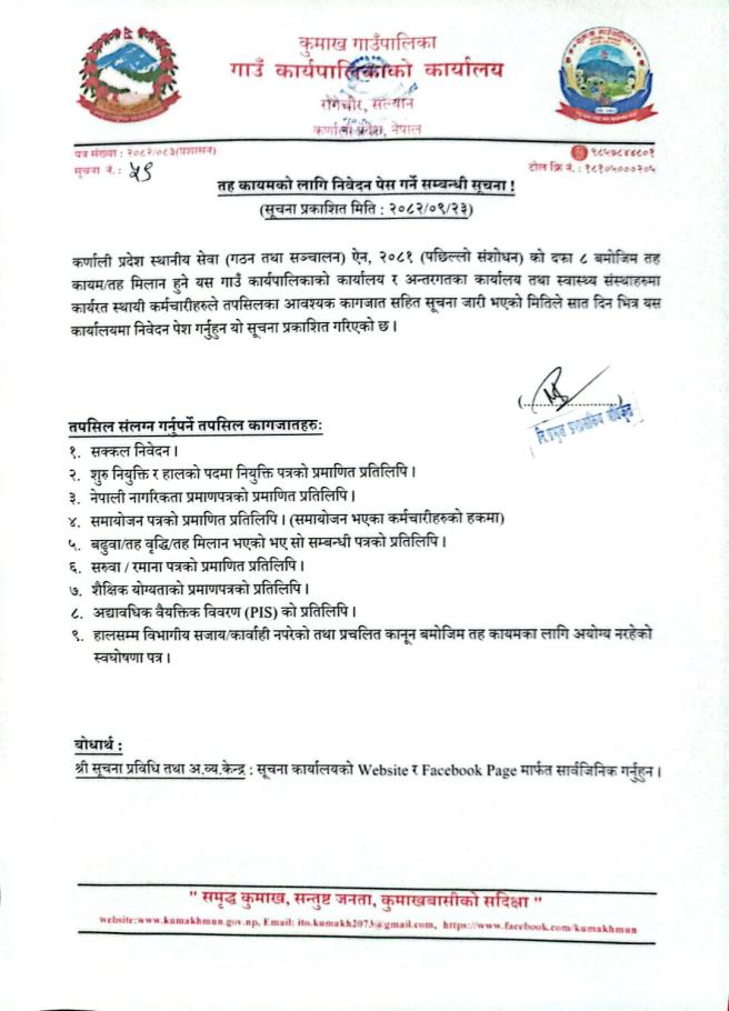 » तह कायमको लागि निवेदन पेस गर्ने सम्बन्धी सूचना