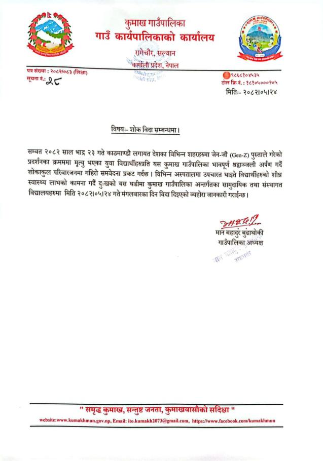 जेन-जि आन्दोलनमा कुमाख गाउँपालिका कर्मचारीहरुको ऐक्यवद्धता