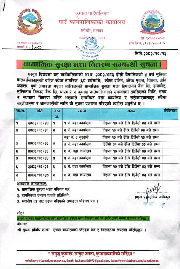सामाजिक सुरक्षा भत्ता वितरण सम्बन्धि सूचना |