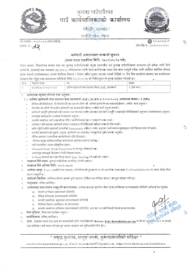 » कर्मचारी आवश्यकता सम्बन्धी सूचना ।
