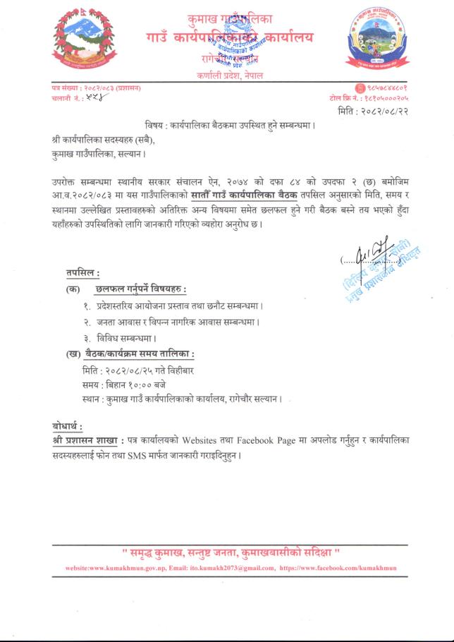 कुमाख गाउँपालिका सल्यानको अनुरोध ।