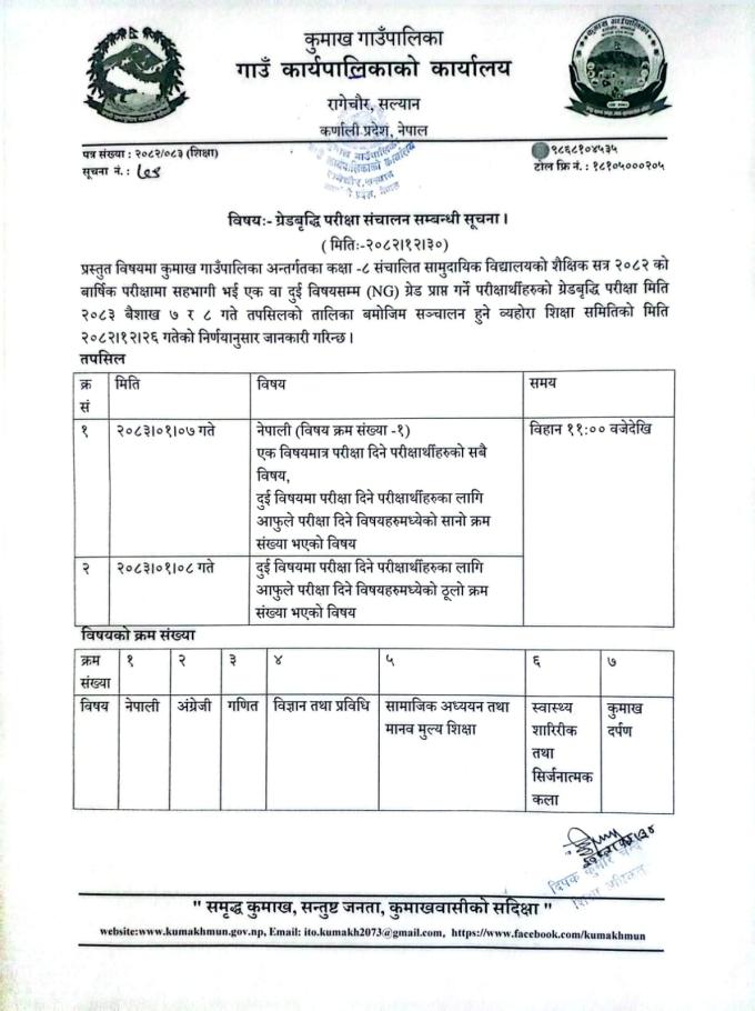 » ग्रेडवृद्दी परिक्षा संचालन सम्बन्धि सूचना ।