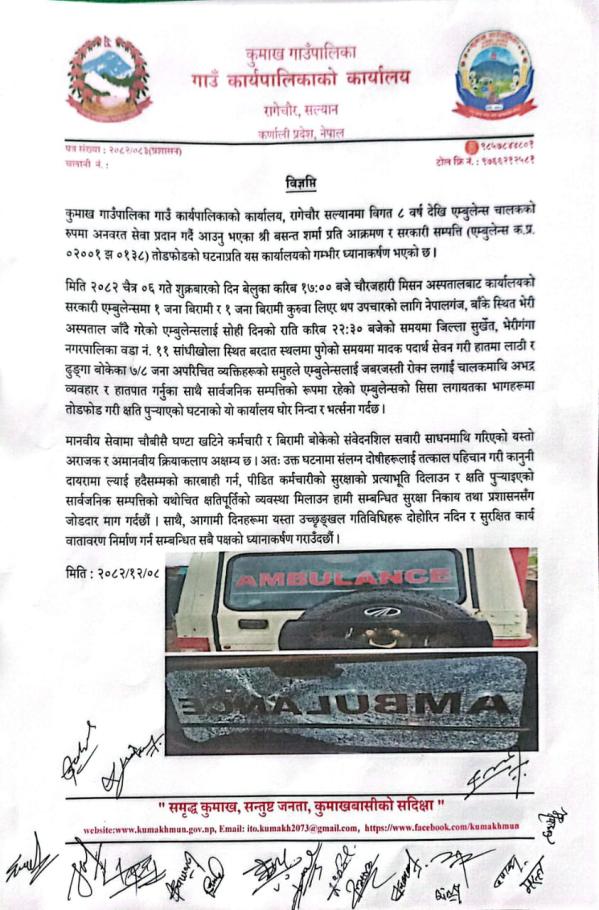 कुमाख गाउँपालिका सल्यानको अनुरोध ।