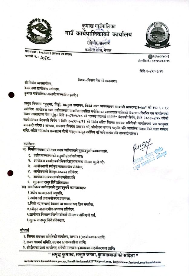 कुमाख गाउँपालिका सल्यानको अनुरोध ।