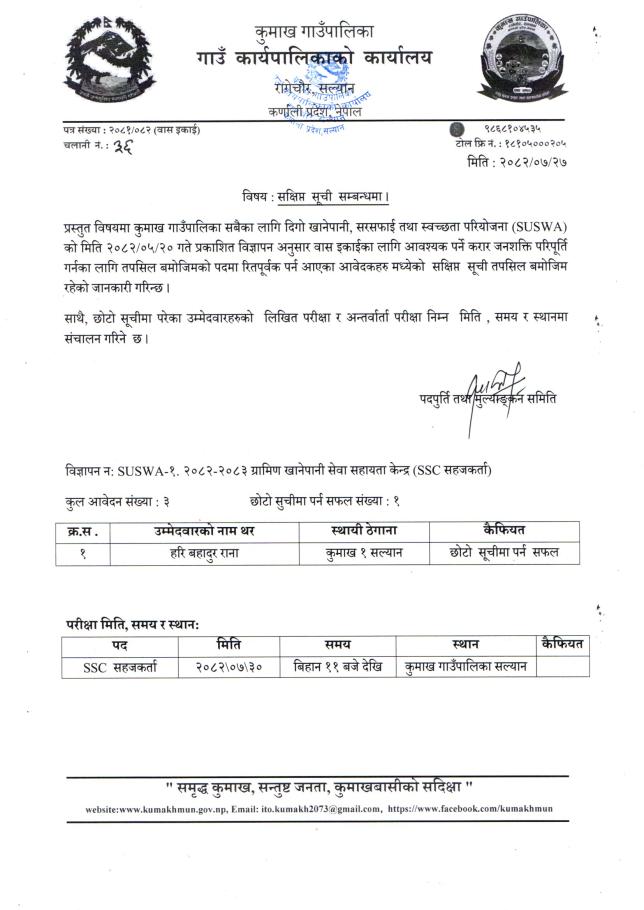 कुमाख गाउँपालिका सल्यानको अनुरोध ।