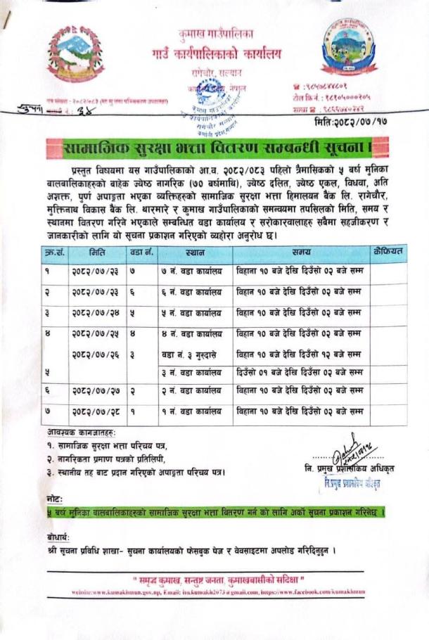 सामाजिक सुरक्षा भत्ता वितरण सम्बन्धी सूचना ।