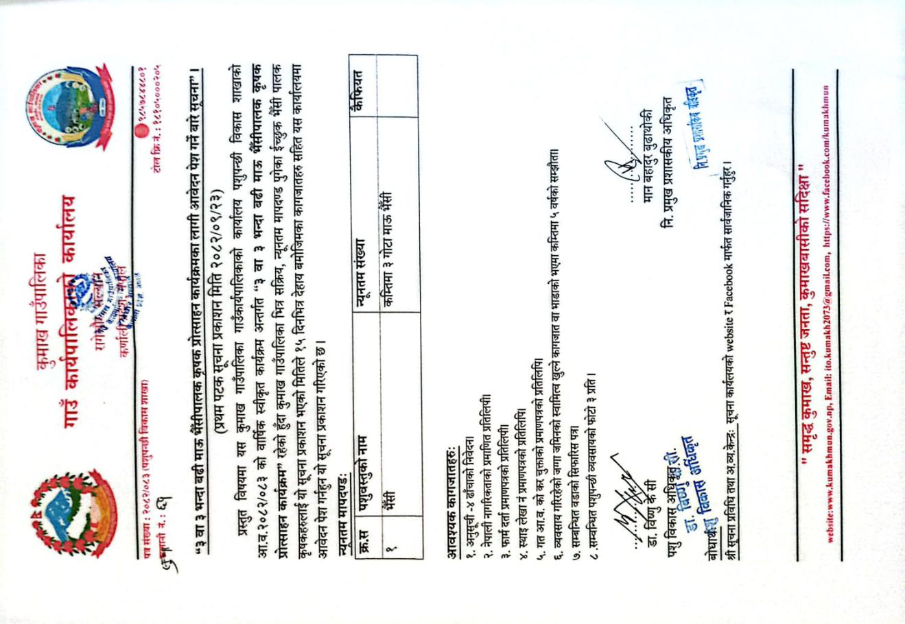 ३ वा ३ भन्दा बढीमाऊ भैसीपालक कृषक प्रोत्साहन कार्यक्रमका लागि आबेदन पेश गर्ने बारे सुचना।